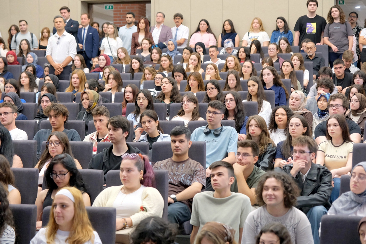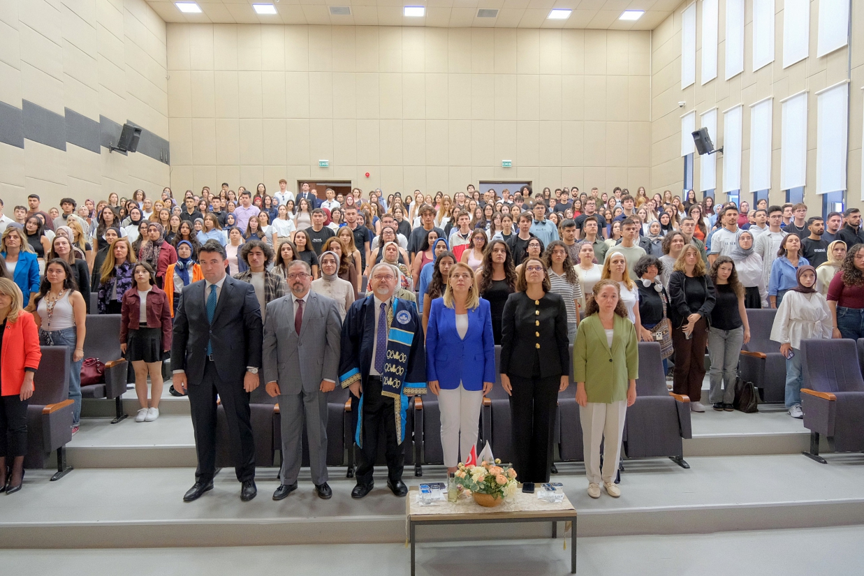 The program, held as part of the “Welcome to University Life Meeting,” was attended by our Rector Prof. Dr. Rengin Ak, Vice Rectors Prof. Dr. Eylem Özkaya Lassalle, Prof. Dr. Murat Gençbay, and Prof. Dr. Meryem Çamur Demir, Rector’s Advisor Prof. Dr. Seçkin Yavuzdoğan, Secretary General Ahmet Şimşek, along with academic and administrative staff and students.