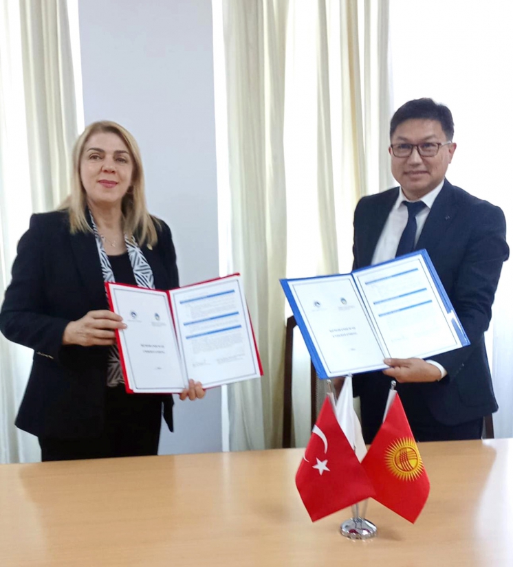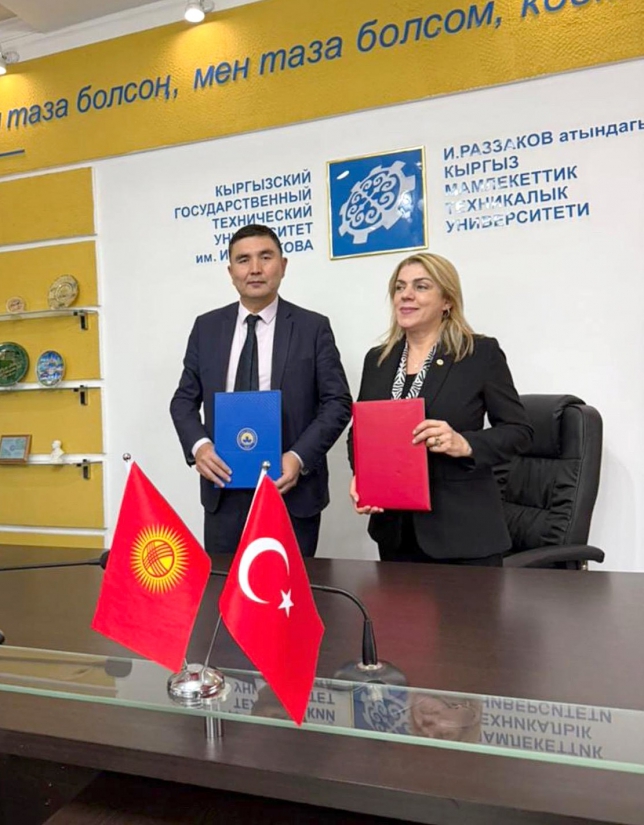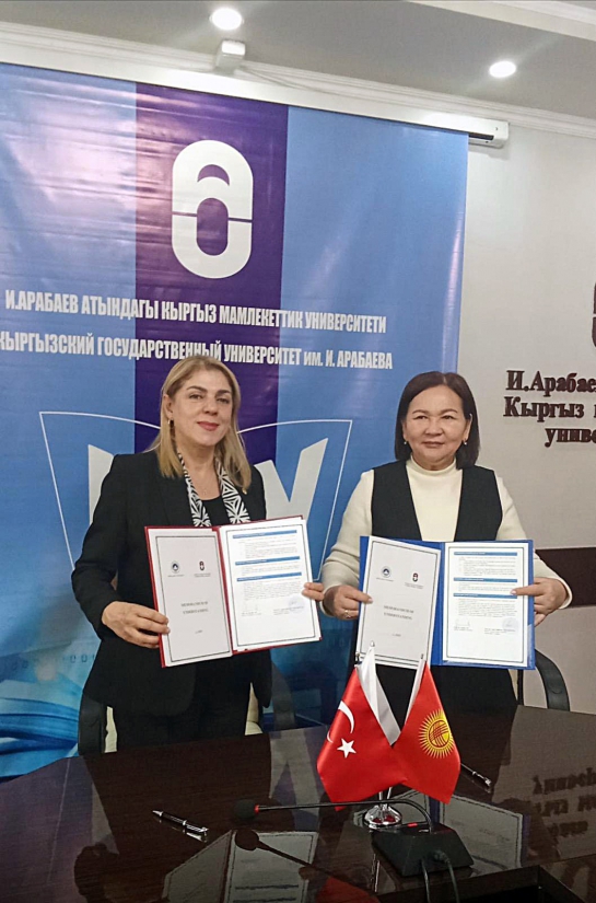 Yapılan temaslar sonucunda, Üniversitemiz ile Kırgızistan’daki üç yükseköğretim kurumu arasında İkili İş Birliği Anlaşmaları (MoU) imzalandı. Bu kapsamda, 17 Ekim 2025 Cuma günü Kırgızistan’ın önde gelen yükseköğretim kurumları olan Ishenaly Arabaev Kırgız Devlet Üniversitesi, I. Razzakov Kırgız Devlet Teknik Üniversitesi ve Akademisyen Kusein Karasaev Bişkek Devlet Üniversitesi ile iş birliği anlaşmaları imzalanmıştır.