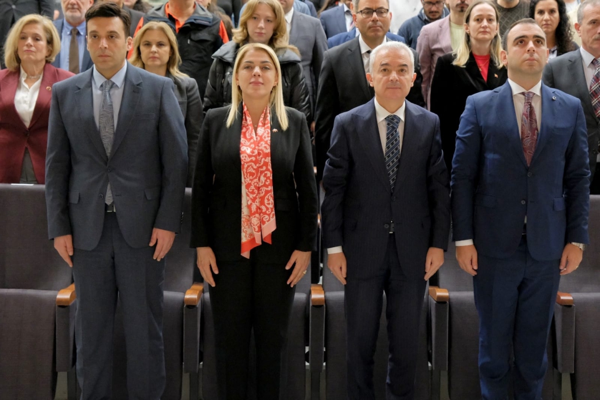 Saygı duruşu ve İstiklal Marşı’nın okunmasıyla başlayan programda açılış konuşmasını gerçekleştiren Rektörümüz Prof. Dr. Rengin Ak, Cumhuriyetin Türk milletine kazandırdığı değerlerin ve toplumsal dönüşümün önemine vurgu yaptı. Rektörümüz konuşmasında, “Cumhuriyet, bir milletin yeniden doğuşunun ve çağdaşlaşma iradesinin simgesidir. Bizler, bilimin ve aklın ışığında yetişen gençlerimizle bu emaneti geleceğe taşımakla sorumluyuz.” ifadelerini kullandı.