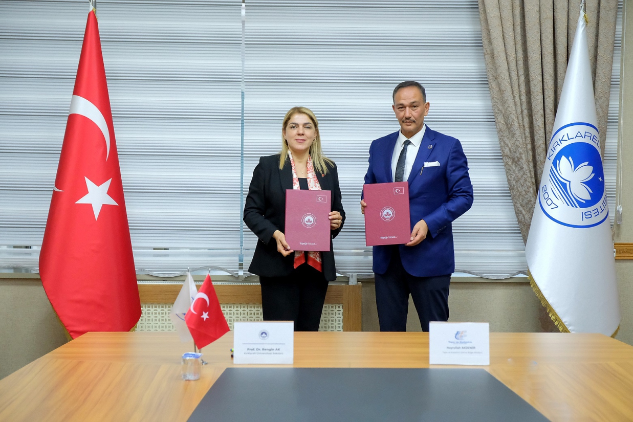 Protokolün imzaları, Rektörümüz Prof. Dr. Rengin Ak ve Tapu ve Kadastro XIV. (Edirne) Bölge Müdürü Hayrullah Akdemir tarafından atıldı.