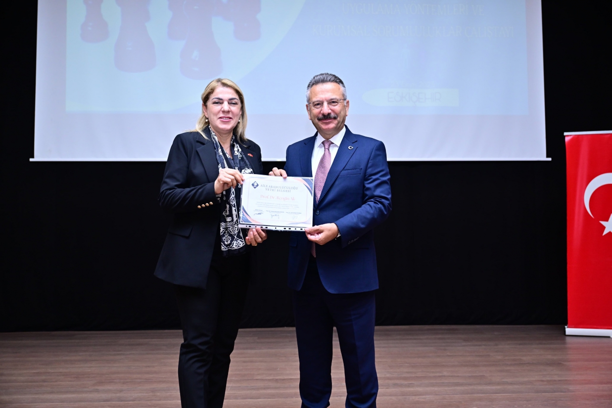 Rektörümüz Prof. Dr. Rengin Ak, etkinlikte gerçekleştirilen belge takdim töreninde Aile Arabuluculuğu Yetki Belgesini teslim aldı.