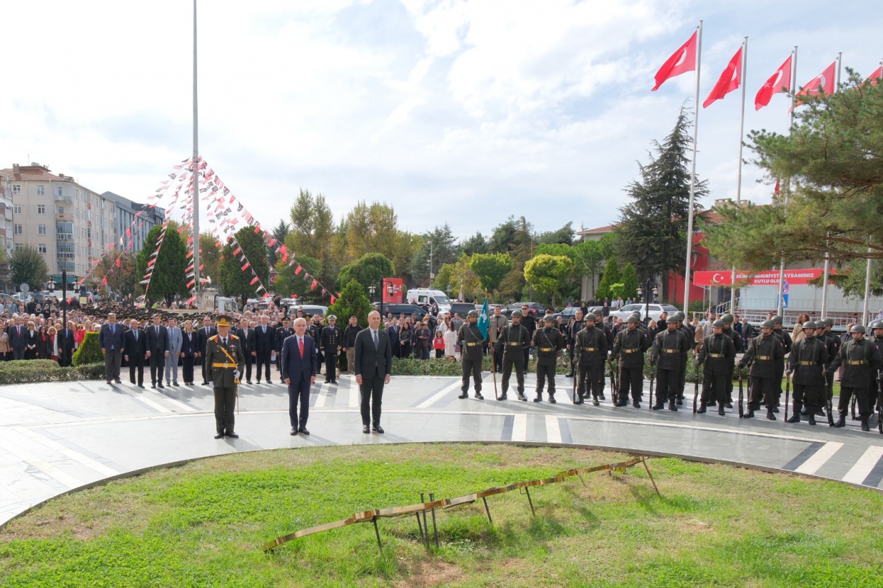 Törende, Kırklareli Valiliği, Garnizon Komutanlığı ve Belediye Başkanlığı tarafından Atatürk Anıtına çelenkler sunuldu.