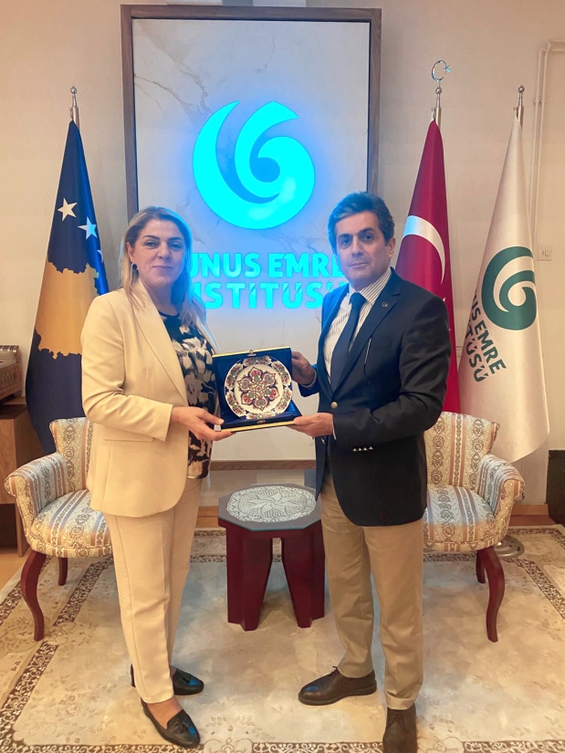 Kosova Yunus Emre Enstitüsü Koordinatörü Sayın Ramazan Yılmaz ise ziyaretten duyduğu memnuniyeti dile getirerek, iki kurum arasındaki iş birliğinin ilerleyen dönemde somut adımlarla güçleneceğini belirtti.