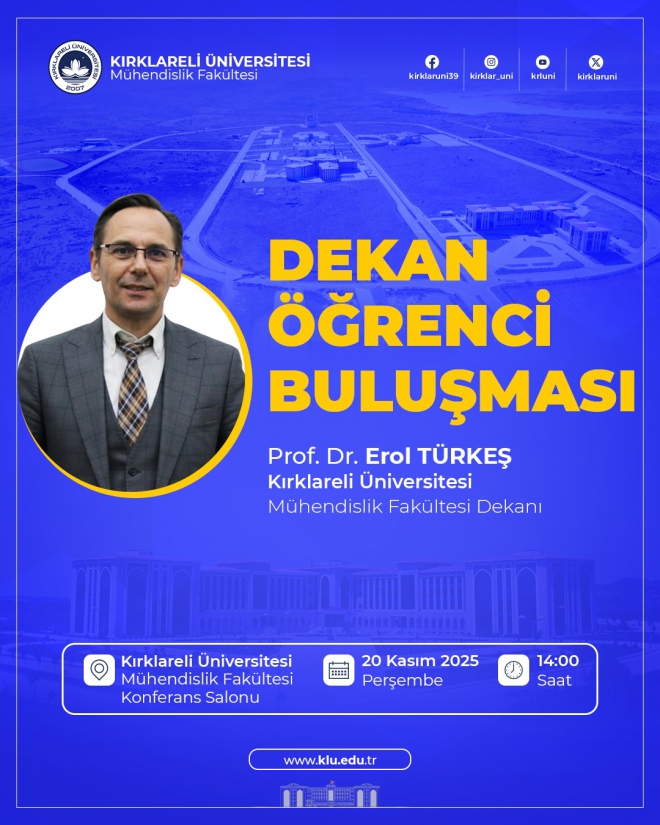 Etkinlik, 20 Kasım 2025 Perşembe günü saat 14.00’te, Mühendislik Fakültesi Konferans Salonu’nda, Mühendislik Fakültesi Dekanı Prof. Dr. Erol Türkeş’in katılımıyla gerçekleştirilecektir.