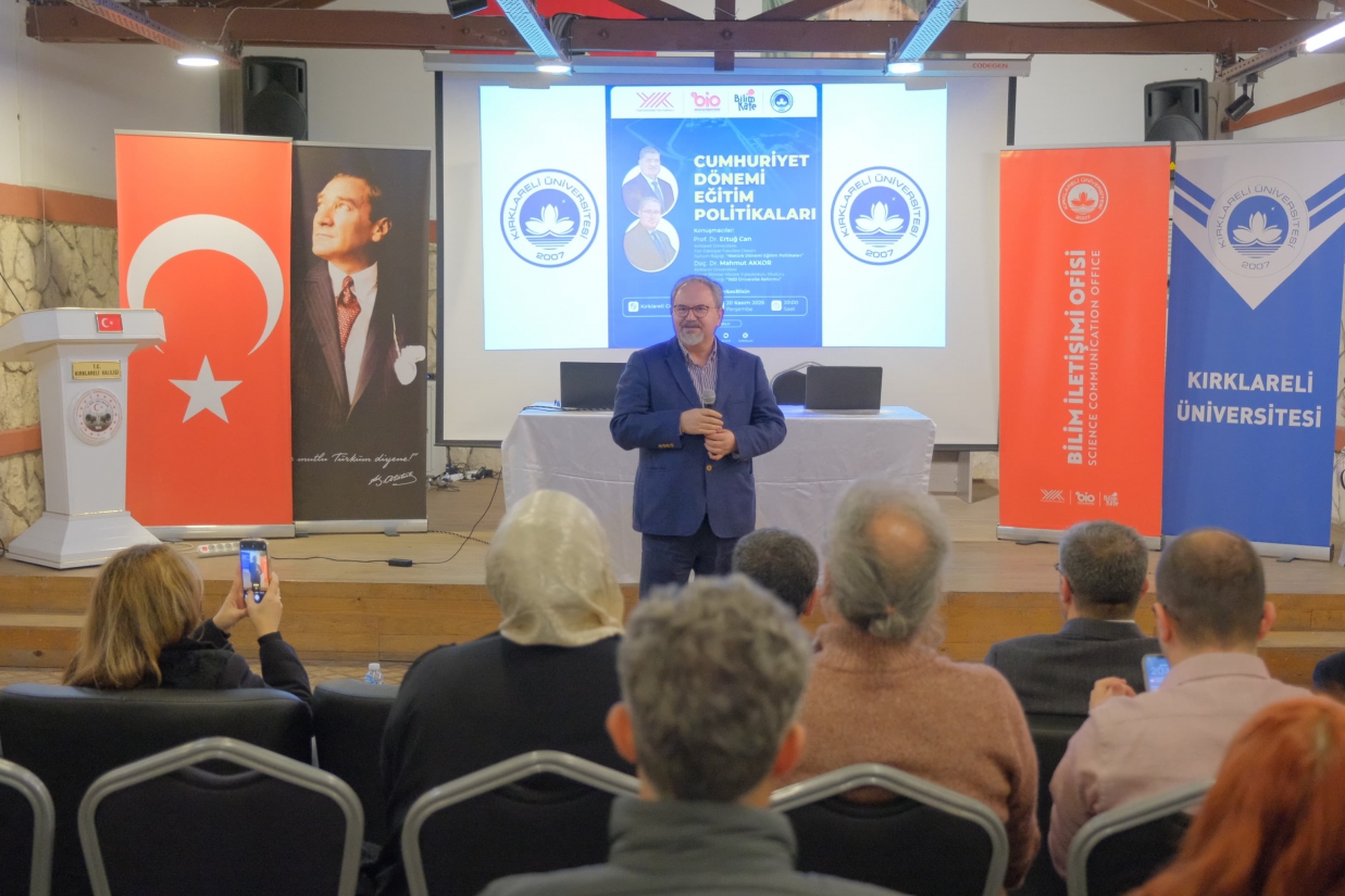 Fen-Edebiyat Fakültesi Dekanı Prof. Dr. Ertuğ Can, sunumunda Atatürk döneminde eğitim alanında gerçekleştirilen temel reformları ele alarak, Cumhuriyet’in kuruluş yıllarında eğitim sisteminin çağdaş ve bilimsel bir yapıya kavuşturulması için atılan adımları değerlendirdi. Prof. Dr. Can, bu dönemde uygulanan politikaların Türkiye’nin eğitim vizyonuna yön veren önemli bir miras bıraktığını ifade etti.