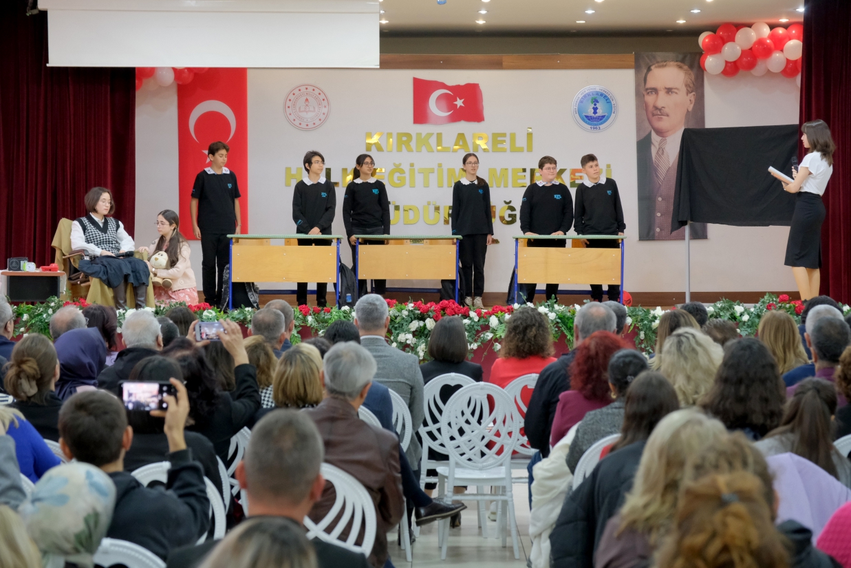 Kutlamalar saat 11.00’de Kırklareli Halk Eğitimi Merkezi’nde düzenlenen Öğretmenler Günü Kutlama Programı ile devam etti. Programda günün anlam ve önemini belirten konuşmalar yapılırken, yarışmalarda dereceye giren öğrenci ve öğretmenlere ödülleri takdim edildi. Ayrıca emekli öğretmenlere Hizmet Şeref Belgeleri verildi ve Öğretmenler Korosu tarafından bir dinleti sunuldu.
