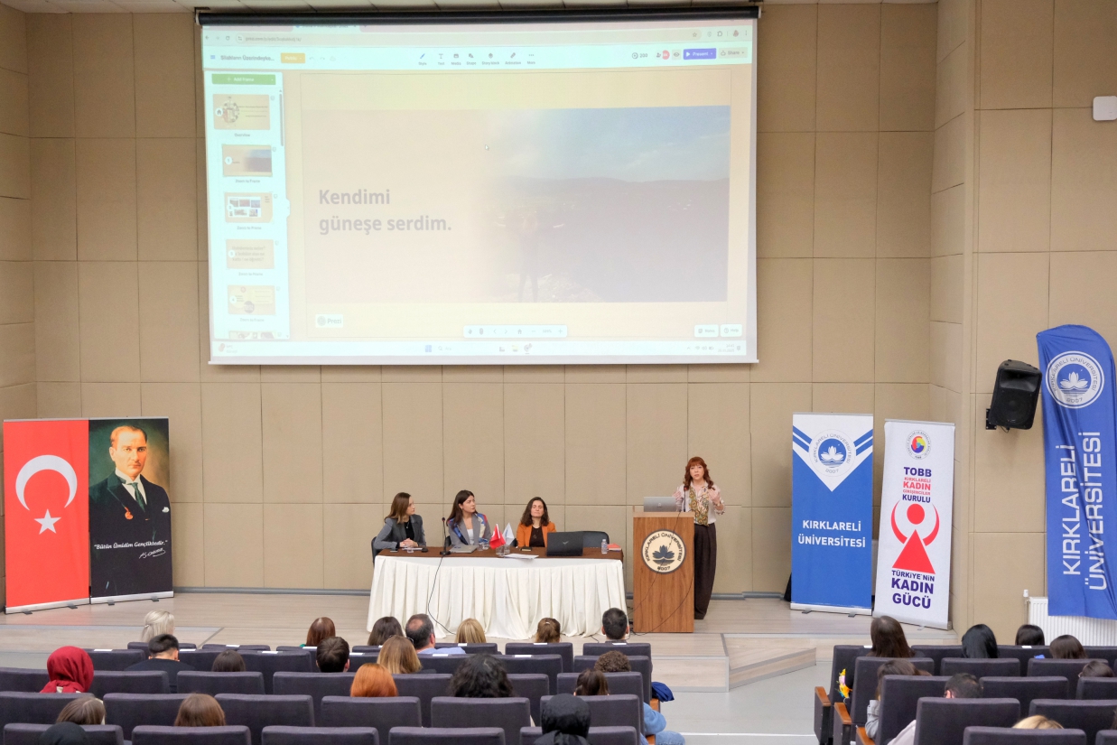 Etkinliğin açılış konuşmasını Rektör Yardımcımız Prof. Dr. Eylem Özkaya Lassalle gerçekleştirdi. Lassalle konuşmasında, kadın girişimciliğinin hem toplumsal hem de ekonomik gelişim açısından taşıdığı önemden bahsederek, gençlerin ilham alacağı bu tür programların Üniversitemizde düzenlenmesinden duyduğu memnuniyeti ifade etti.
