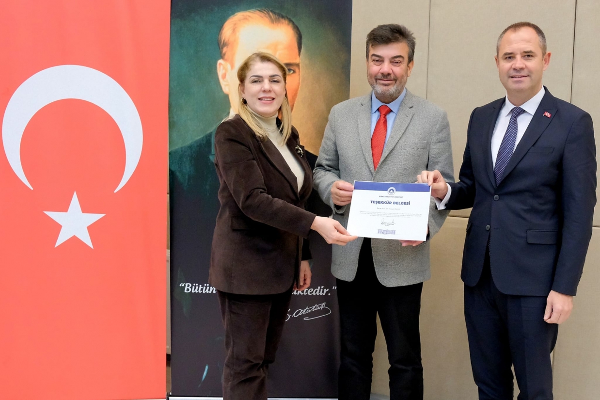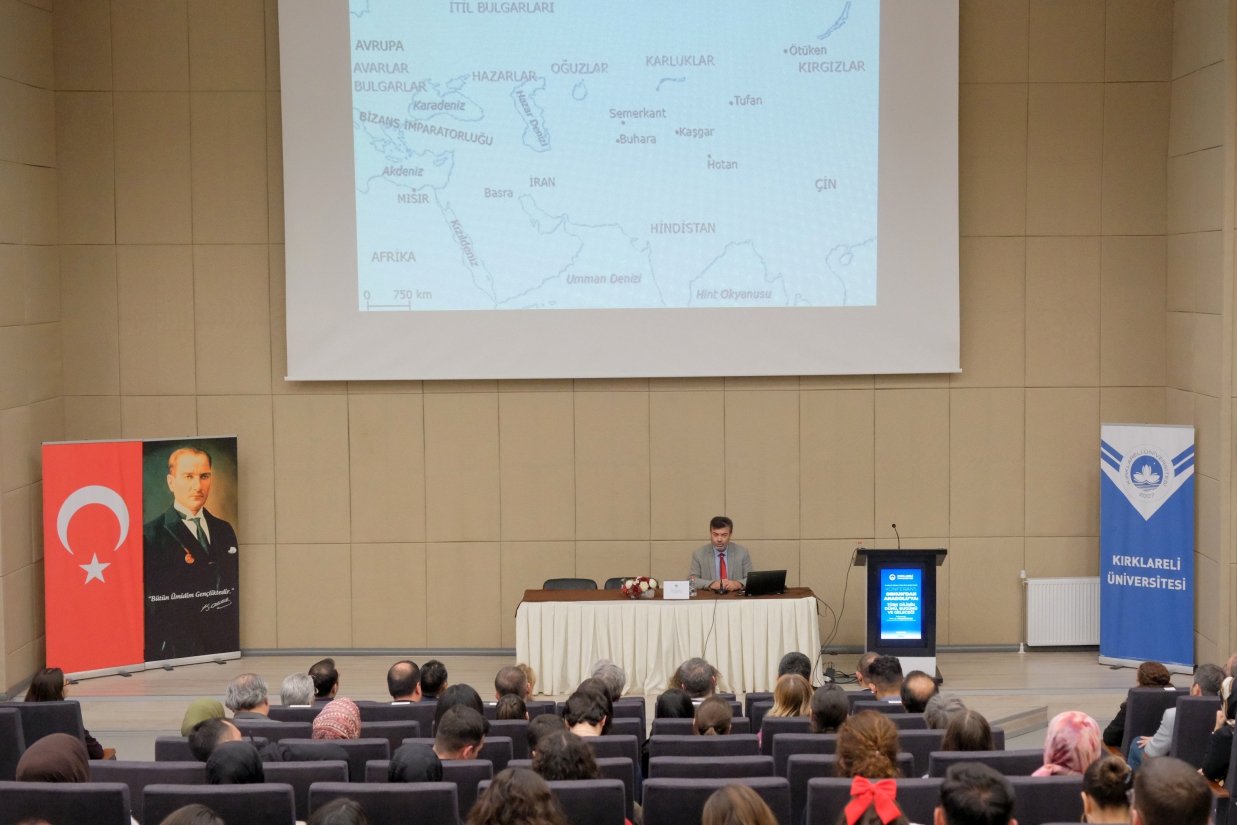 Üniversitemiz Türkiyat Uygulama ve Araştırma Merkezi tarafından 15 Aralık Dünya Türk Dili Ailesi Günü kapsamında, “Orhun’dan Anadolu’ya: Türk Dilinin Dünü, Bugünü ve Geleceği” başlıklı konferans, Kırklareli Valisi Uğur Turan, Filiz Canbaş Köse Hanımefendi, Belediye Başkanı Derya Bulut, Cumhuriyet Başsavcısı Özkan Levent Taşkoparan, Rektörümüz Prof. Dr. Rengin Ak ve Cumhuriyet Başsavcı Vekili İsmet Saçlı’nın katılımlarıyla gerçekleştirildi.
