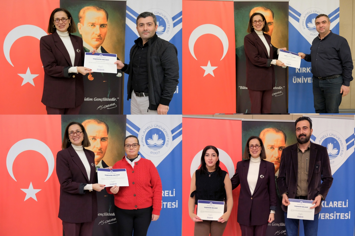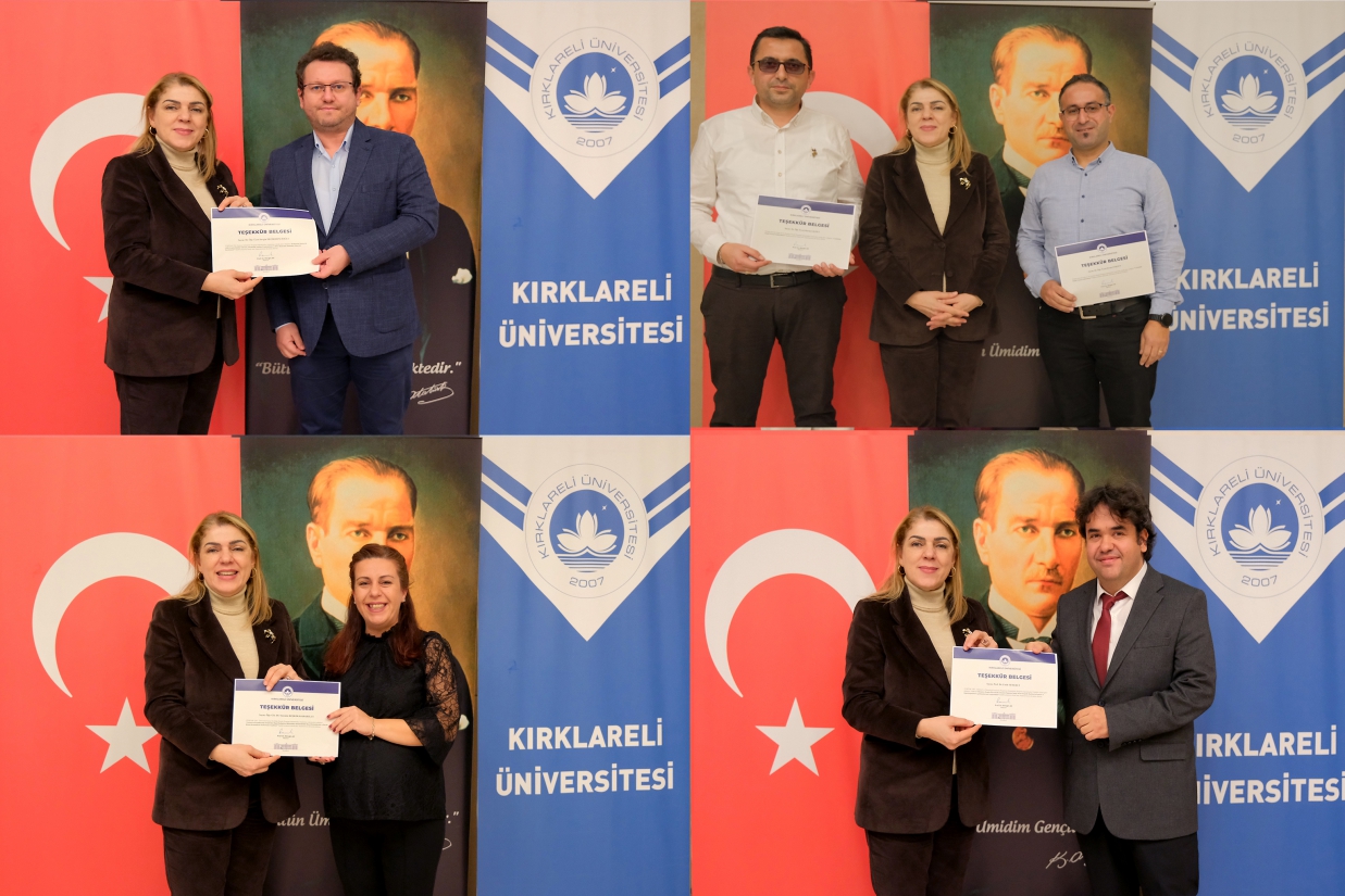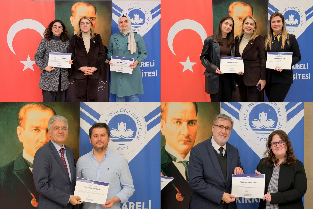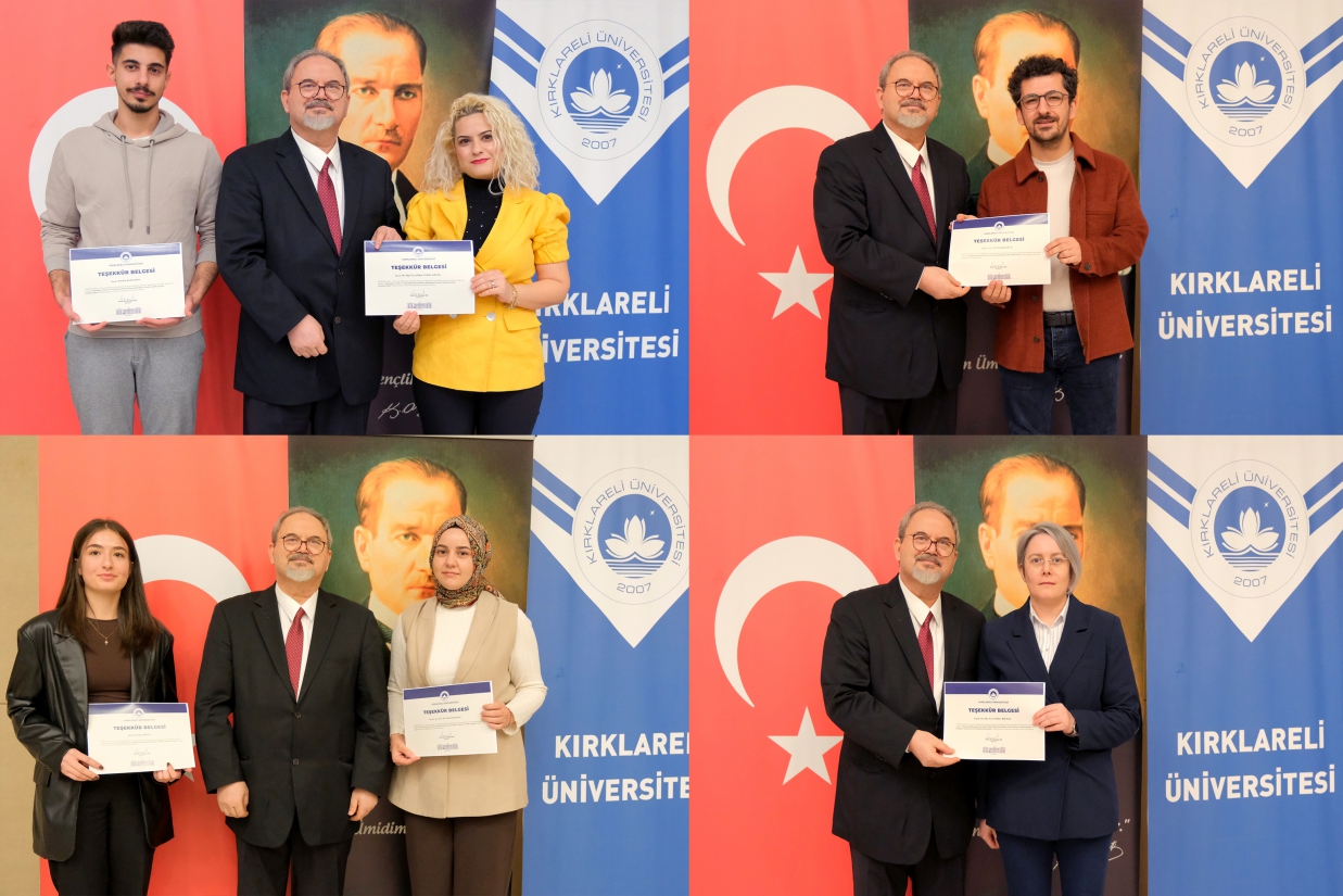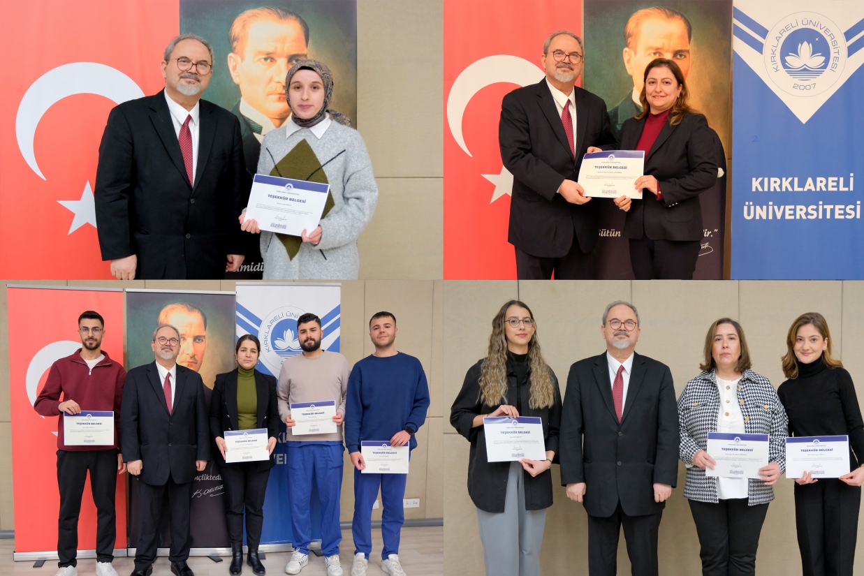 Programın devamında, 2025 yılı projelerinde görev alan akademisyen ve öğrencilere Tebrik Belgeleri takdim edildi. Proje yürütücüleri ve araştırmacılar, proje adları anons edilerek sahneye davet edildi ve belgeleri protokol üyeleri tarafından verildi.