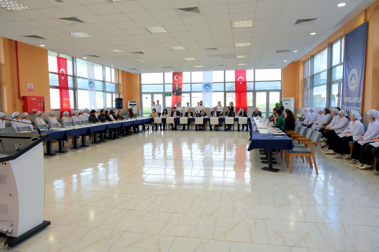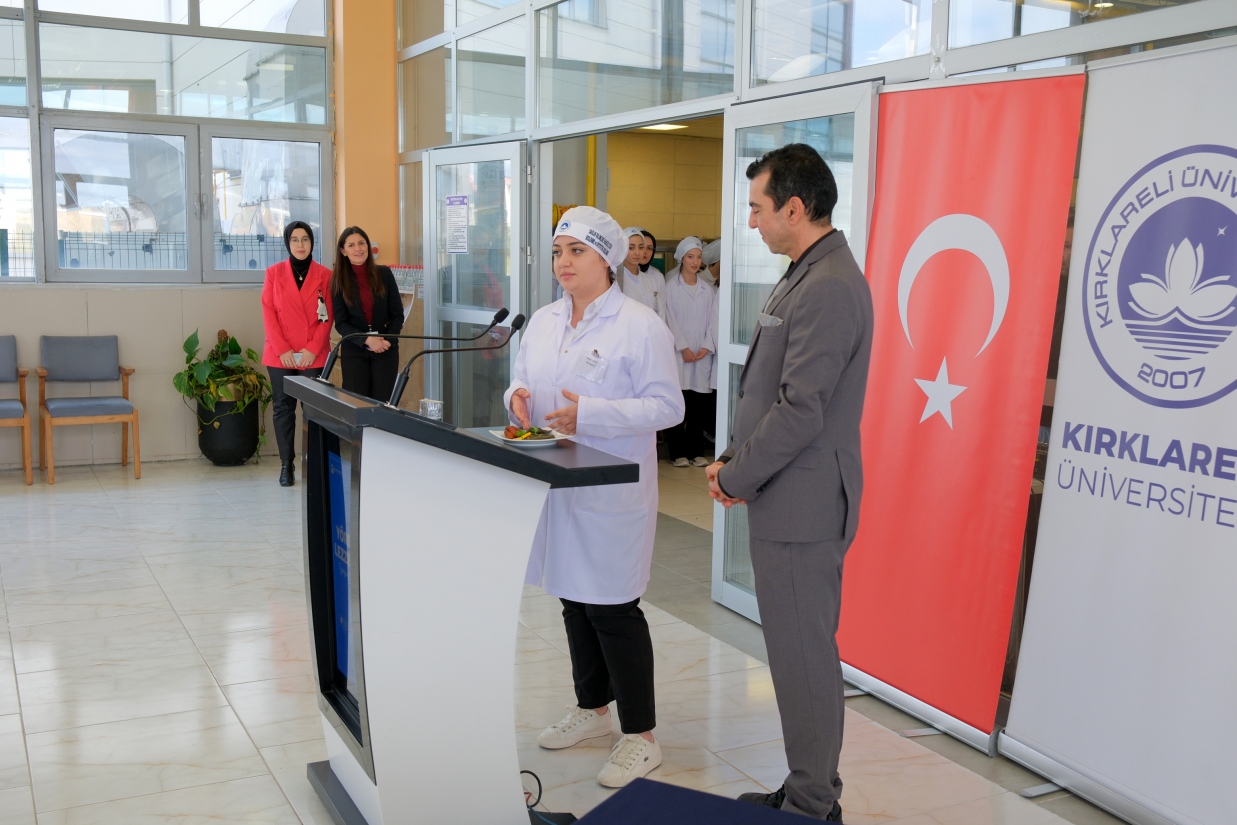 Üniversitemiz Beslenme ve Diyetetik Bölümü tarafından düzenlenen “Yöresel Lezzetler Mutfak Sunumu” Kırklareli Valisi Uğur Turan, Cumhuriyet Başsavcısı Özkan Levent Taşkoparan, İdare Mahkemesi Başkanı İbrahim Doğan, Rektörümüz Prof. Dr. Rengin Ak, Cumhuriyet Başsavcı Vekili İsmet Saçlı, Rektör Yardımcımız Prof. Dr. Meryem Çamur Demir ve İl Protokolünün katılımlarıyla gerçekleştirildi.