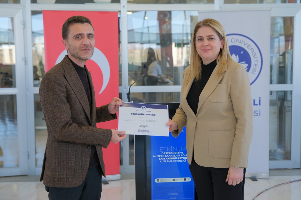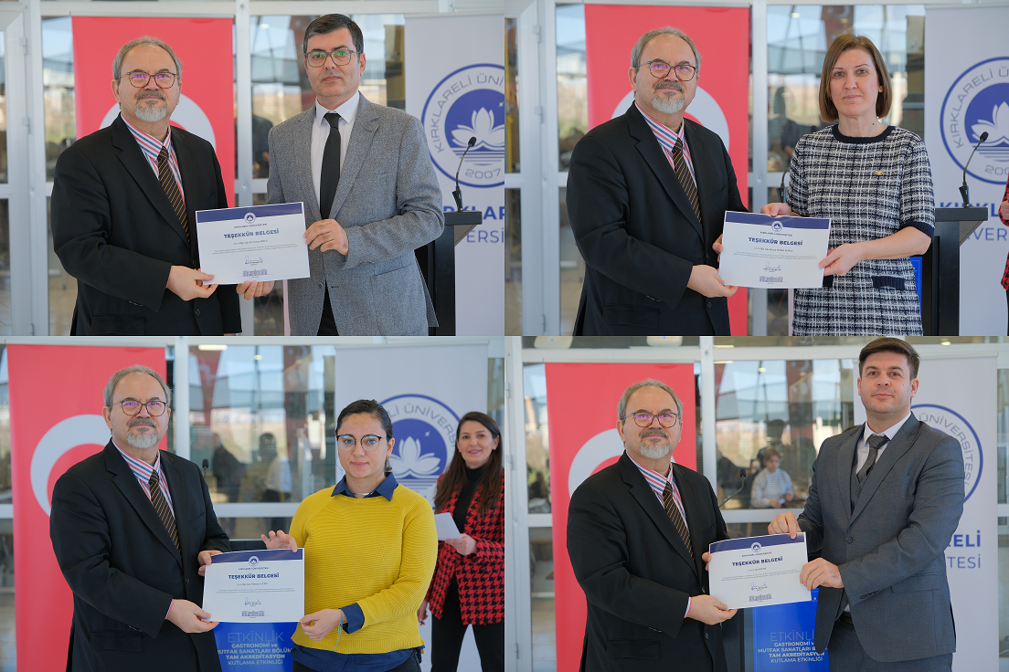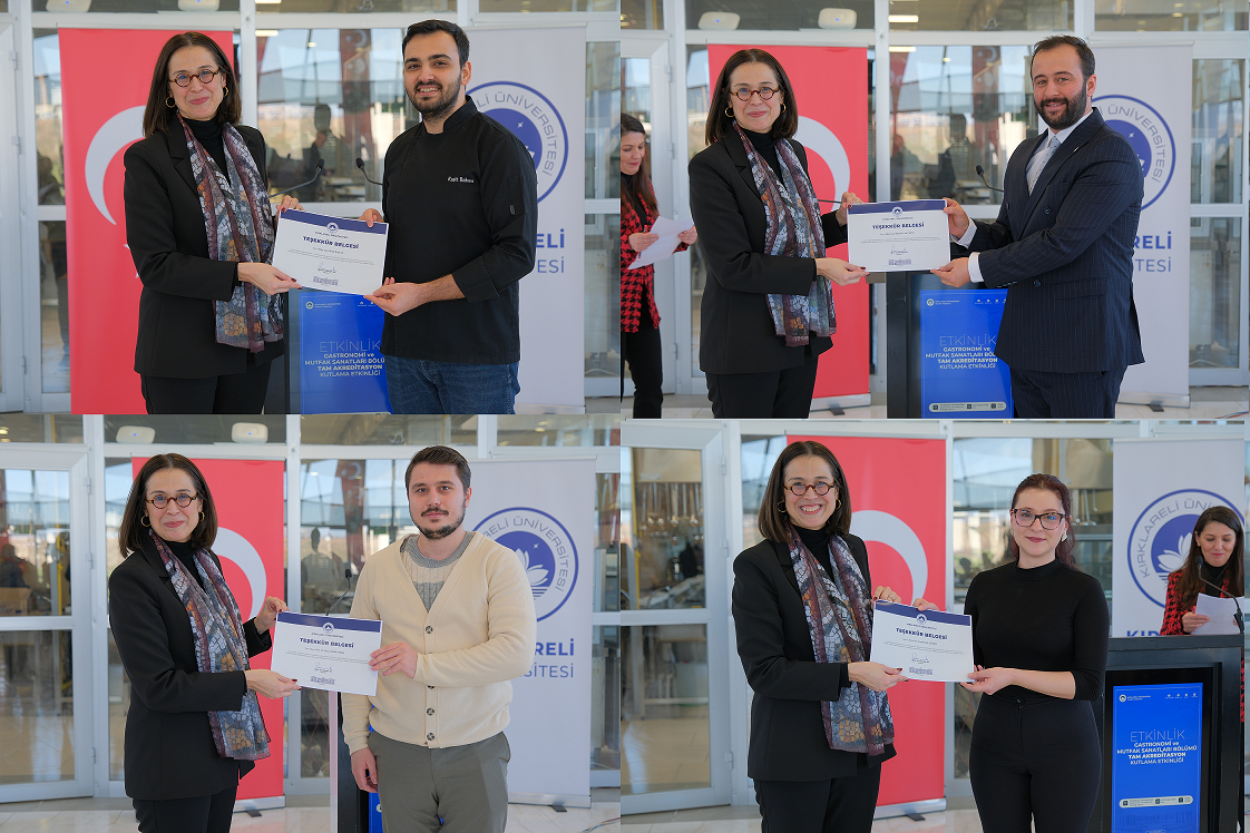 Üniversitemiz Turizm Fakültesi Gastronomi ve Mutfak Sanatları Bölümü’nün, Turizm Eğitimi Değerlendirme ve Akreditasyon Kurulu (TURAK) tarafından yürütülen değerlendirme süreci sonucunda 31 Aralık 2025 – 31 Aralık 2031 tarihleri arasında geçerli olmak üzere 6 yıllık tam akreditasyon almaya hak kazanması dolayısıyla Teşekkür Belgesi Takdim Töreni gerçekleştirildi.
