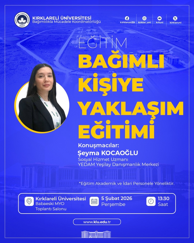 Eğitim, 5 Şubat 2026 Perşembe günü saat 13.30’da, Kırklareli Üniversitesi Babaeski MYO Toplantı Salonu’nda gerçekleştirilecektir.
