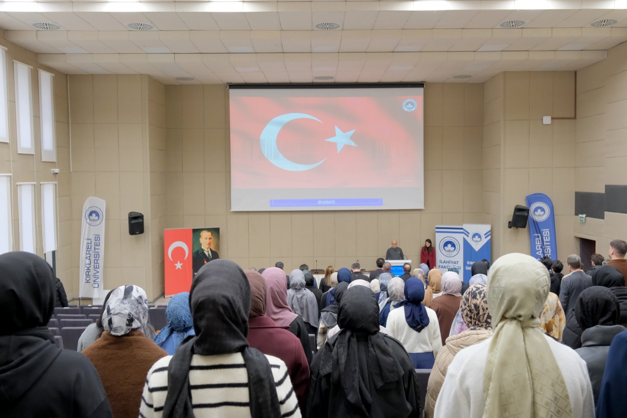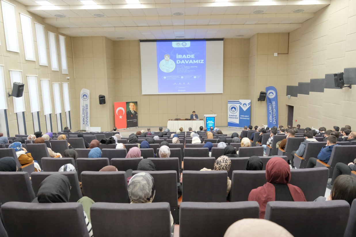 Üniversitemiz İlahiyat Fakültesi tarafından 2025-2026 Eğitim-Öğretim Yılı Bahar Dönemi açılış dersi kapsamında düzenlenen “İrade Davamız” başlıklı konferans gerçekleştirildi. Programa Rektörümüz Prof. Dr. Rengin Ak, İlahiyat Fakültesi Dekanı Prof. Dr. Mustafa Canlı, akademik ve idari personel ile öğrenciler katıldı.