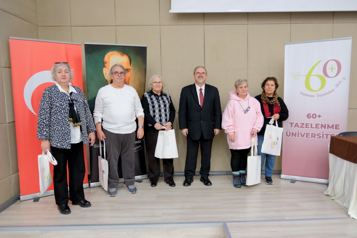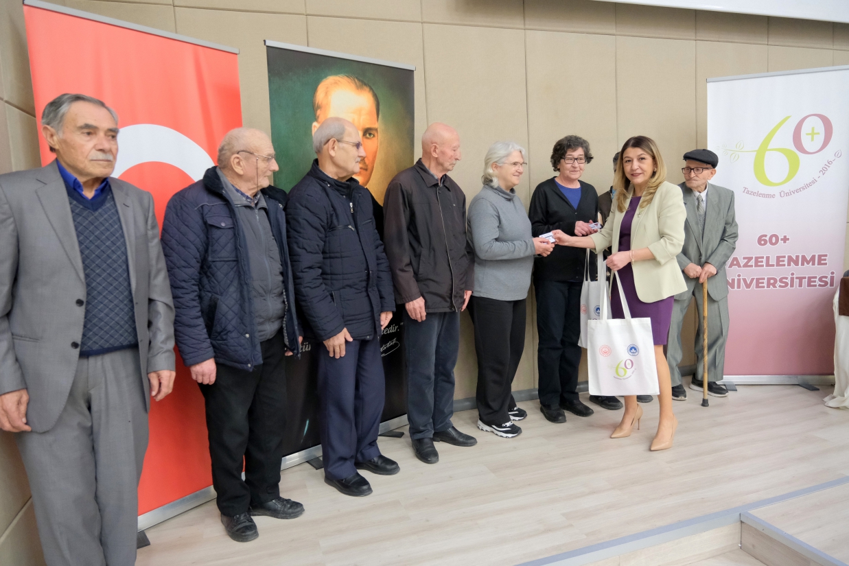 Konuşmanın ardından 60+ Tazelenme Üniversitesi öğrencilerine kimlik kartları takdim edildi. Öğrencilerimizin heyecan ve mutluluğu törene anlamlı anlar kattı.