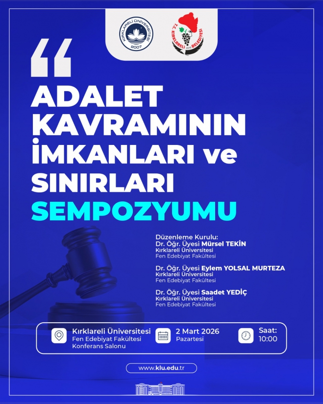 Üniversitemiz Fen Edebiyat Fakültesi tarafından “Adalet Kavramının İmkânları ve Sınırları” başlıklı sempozyum düzenlenecektir.
