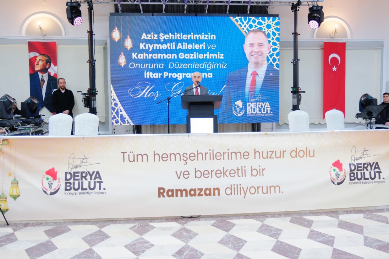 Kırklareli Belediyesi tarafından aziz şehitlerimizin kıymetli aileleri ve kahraman gazilerimiz onuruna düzenlenen iftar programı, il protokolünün geniş katılımıyla gerçekleştirildi.