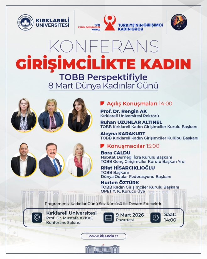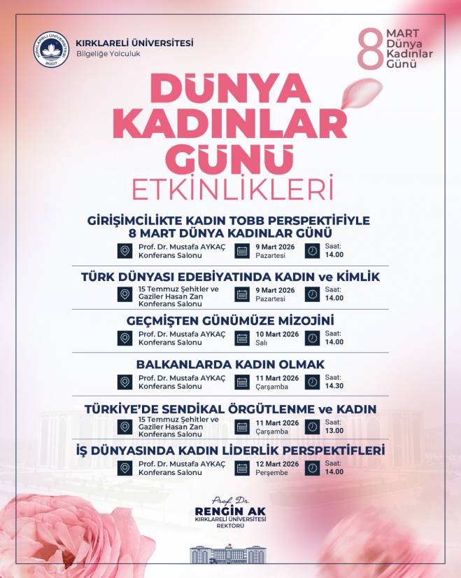 Üniversitemiz tarafından 8 Mart Dünya Kadınlar Günü kapsamında hafta boyunca çeşitli etkinlikler düzenlenecektir.