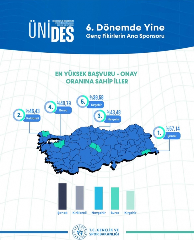 Üniversitemiz Öğrenci Kulüpleri Koordinatörlüğü bünyesinde faaliyet gösteren öğrenci kulüpleri, Gençlik ve Spor Bakanlığı tarafından yürütülen Üniversite Öğrenci Toplulukları İş Birliği ve Destek Programı (ÜNİDES) kapsamında önemli bir başarı elde etti. Kırklareli, program kapsamında en yüksek başvuru–onay oranına sahip iller arasında ikinci sırada yer aldı.