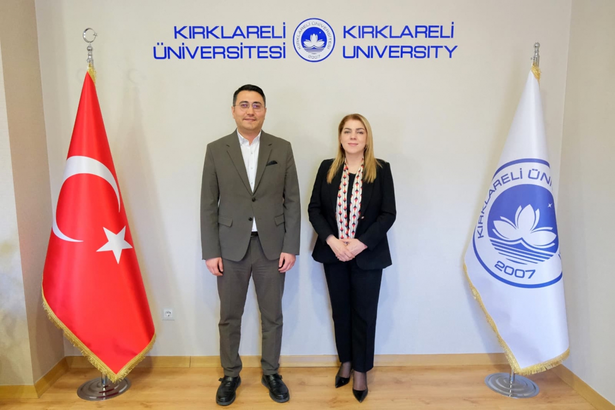 Kırklareli Kamu Hastaneleri Hizmetleri Başkanı Dr. Öğr. Üyesi Enes Güler, Rektörümüz Prof. Dr. Rengin Ak’ı makamında ziyaret etti.
