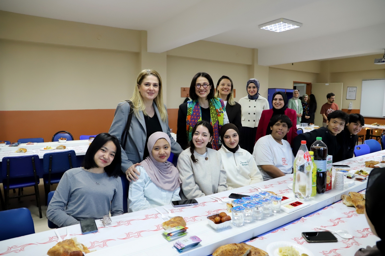 Samimi bir atmosferde gerçekleşen iftar programı, uluslararası öğrencilerimizin birbirleriyle ve üniversitemiz yöneticileriyle sohbet etme imkânı bulduğu buluşmanın ardından hatıra fotoğrafı çekimi ile sona erdi.