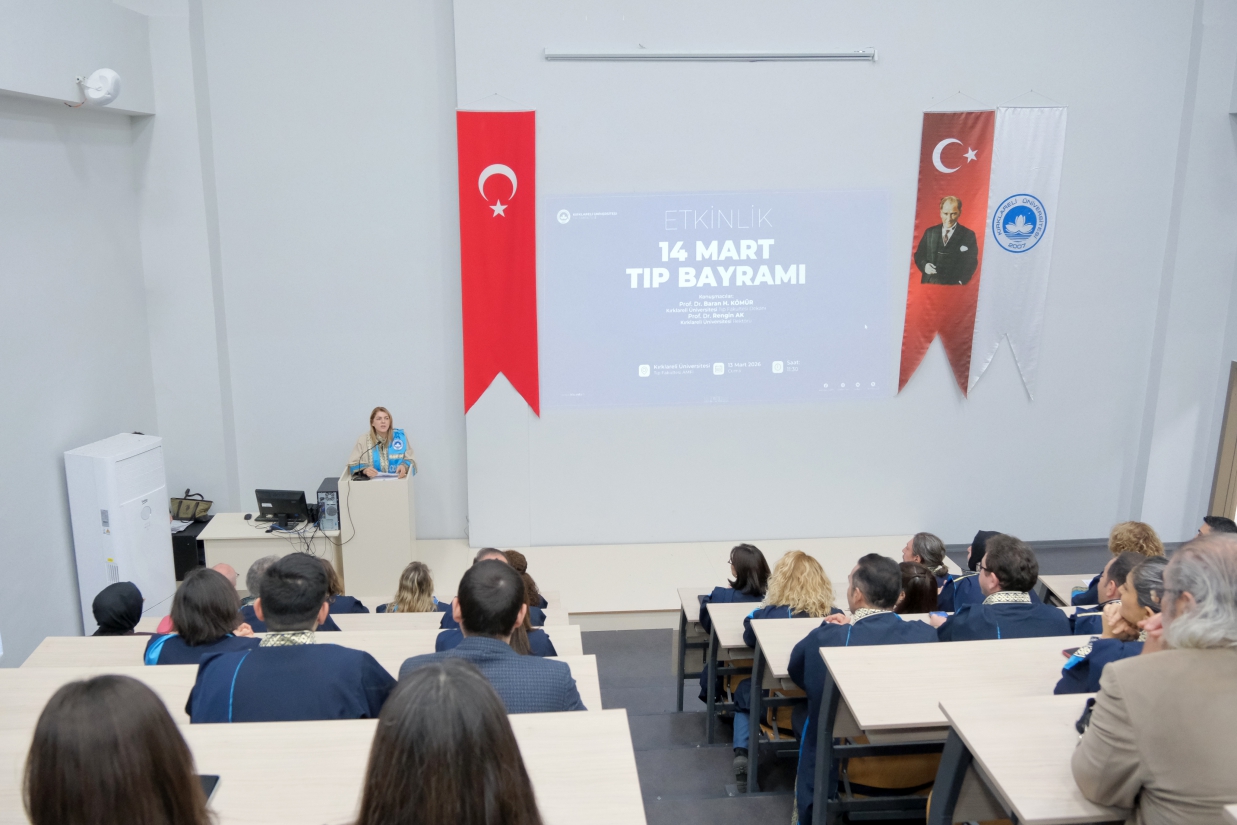 Hekimlik mesleğinin önemi ve sağlık alanındaki gelişmelerin ele alındığı programa Rektörümüz Prof. Dr. Rengin Ak, Rektör Yardımcılarımız Prof. Dr. Eylem Özkaya Lassalle ve Prof. Dr. Meryem Çamur Demir, Tıp Fakültesi Dekanı Baran H. Kömür, İl Sağlık Müdürü Dr. Öğr. Üyesi Çiğdem Cerit, Kırklareli Eğitim ve Araştırma Hastanesi Başhekimi Dr. Öğr. Üyesi Zeliha Türkyılmaz, akademisyenler, sağlık çalışanları ve öğrenciler katıldı.