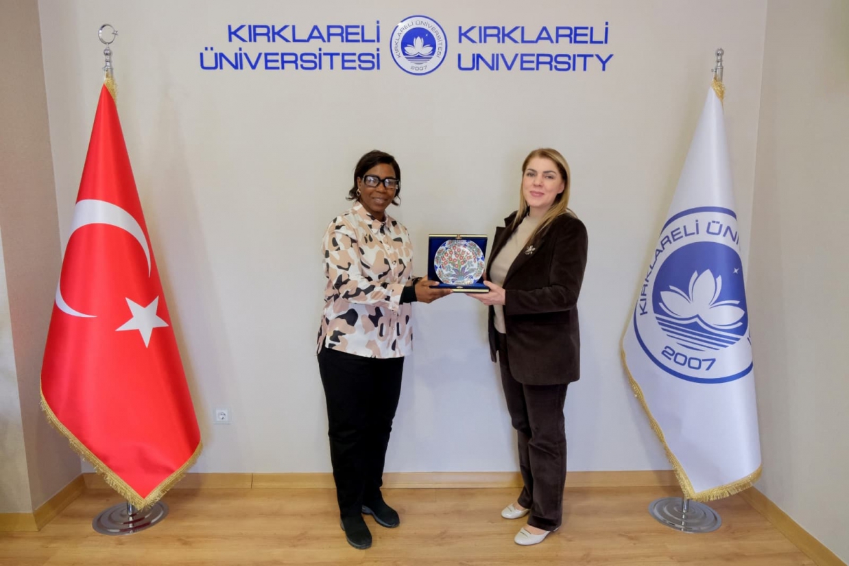 Benin Abomey-Calavi Üniversitesi Rektör Yardımcısı Prof. Dr. Nelly Kelome ile Abomey-Calavi Politeknik Okulu Müdürü Prof. Victorien Dougnonus, Rektörümüz Prof. Dr. Rengin Ak’ı makamında ziyaret etti.