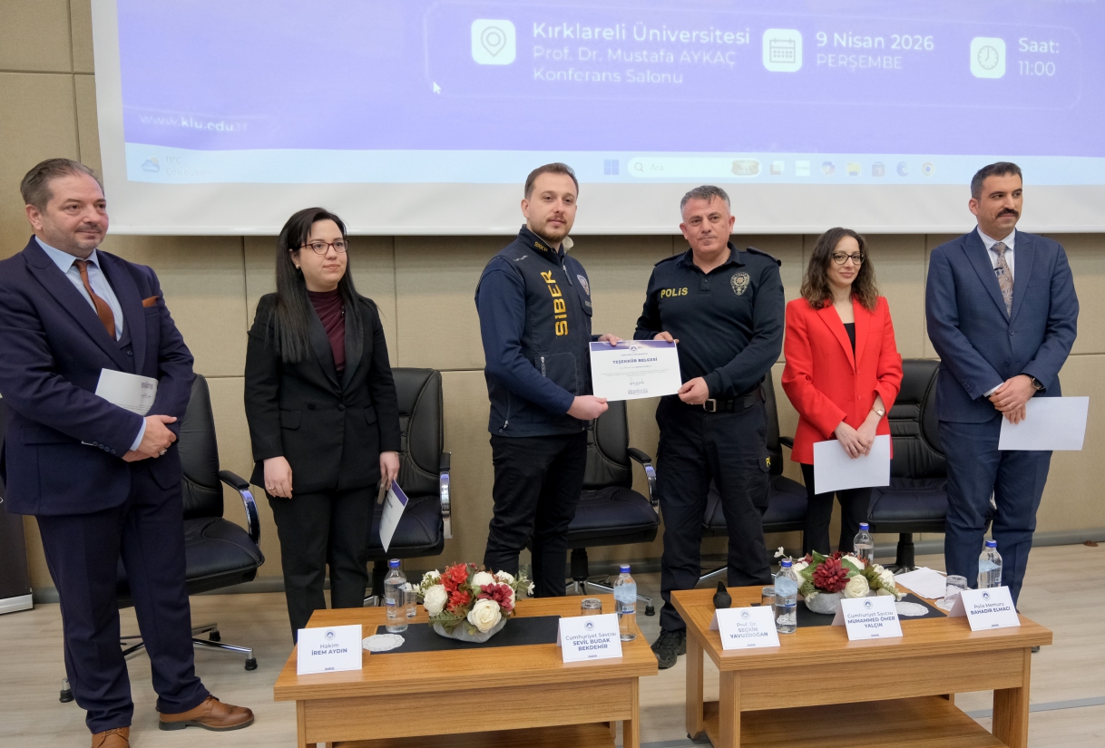 Üniversitemiz, Kırklareli Cumhuriyet Başsavcılığı ve Siber Suçlarla Mücadele Daire Başkanlığı (SİBERAY) iş birliğinde, dijital dünyada giderek artan suç türlerine karşı farkındalık oluşturmak amacıyla “Yasa Dışı Bahis ve Dolandırıcılık Suçlarında IBAN Kullandırma” konulu panel düzenlendi.