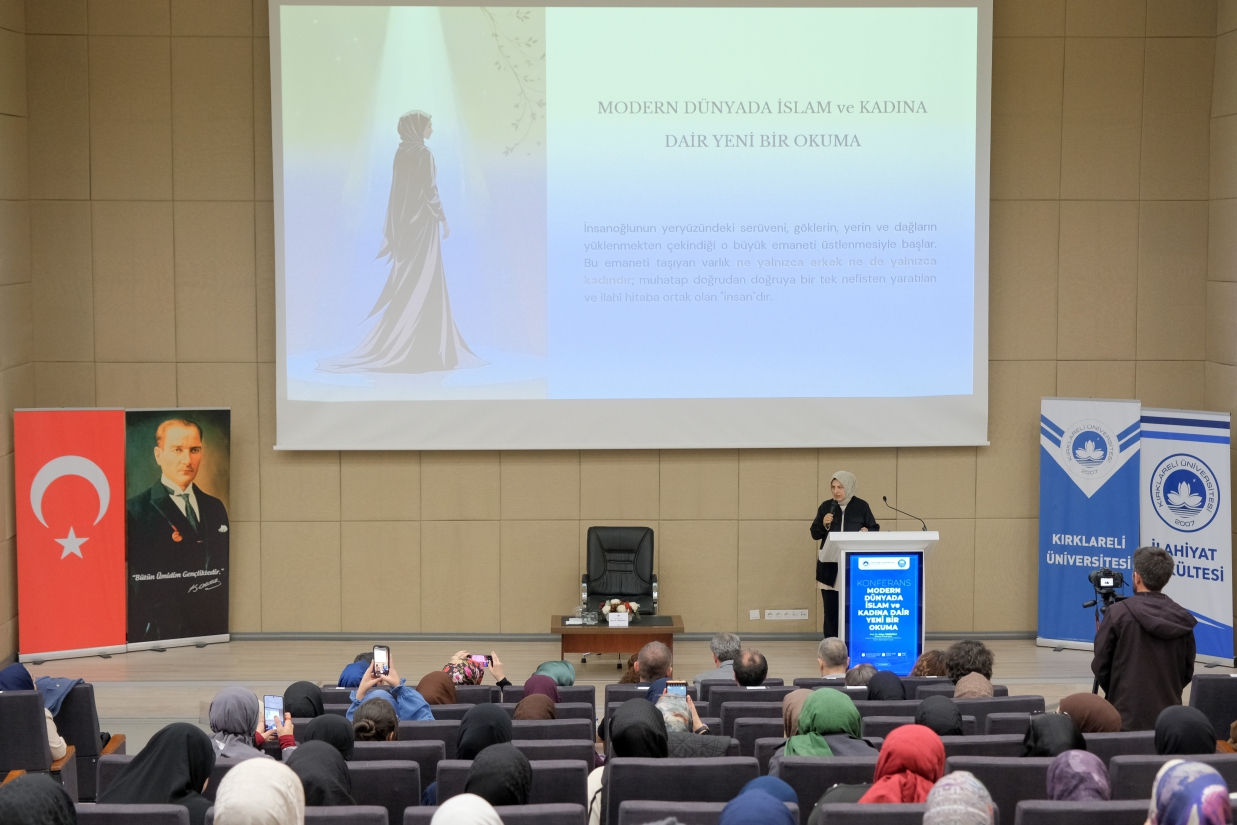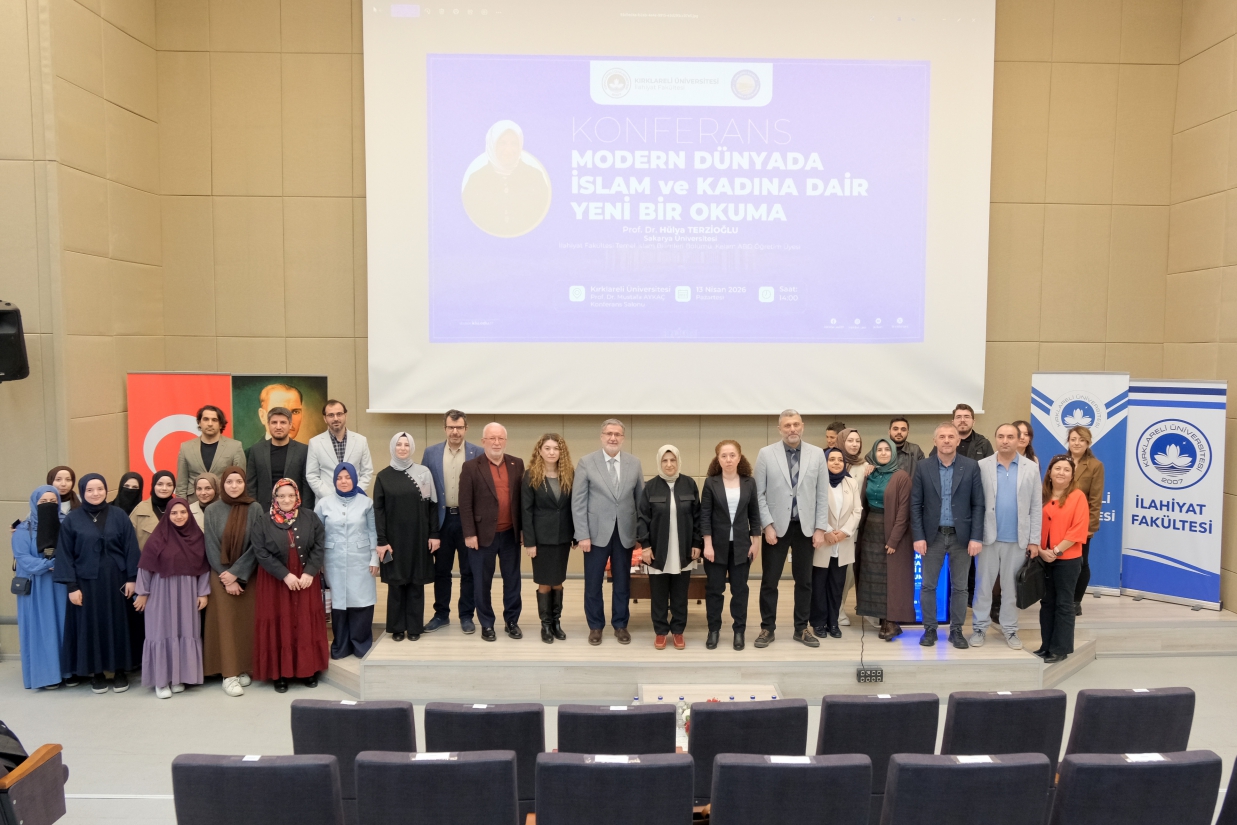 Üniversitemiz İlahiyat Fakültesi ile Kırklareli İlahiyat Yardımlaşma ve Eğitim Derneği iş birliğinde “Modern Dünyada İslam ve Kadına Dair Yeni Bir Okuma” başlıklı konferans Kırklareli Valisi Uğur Turan ve Rektör Yardımcımız Prof. Dr. Meryem Çamur Demir’in katılımlarıyla gerçekleştirildi.