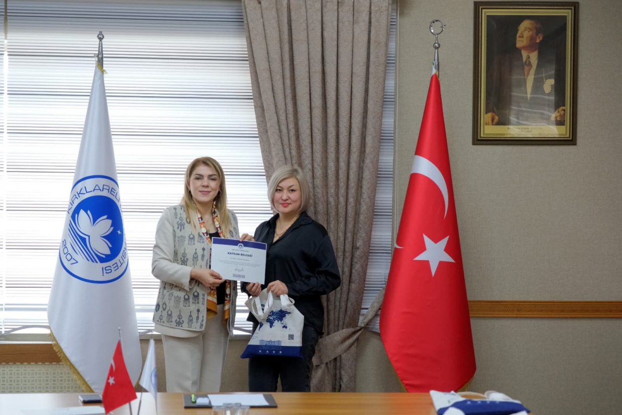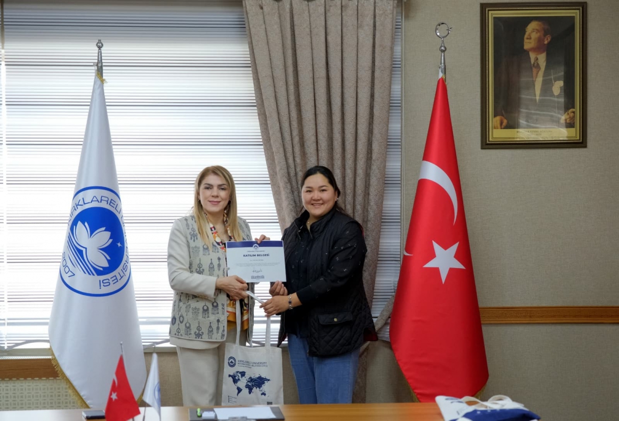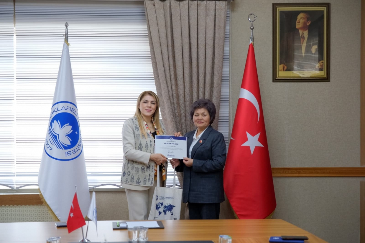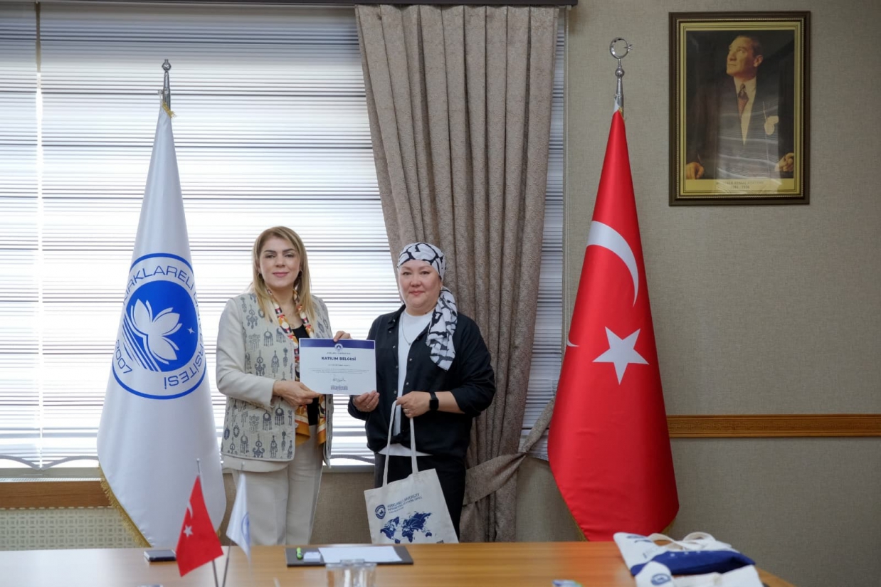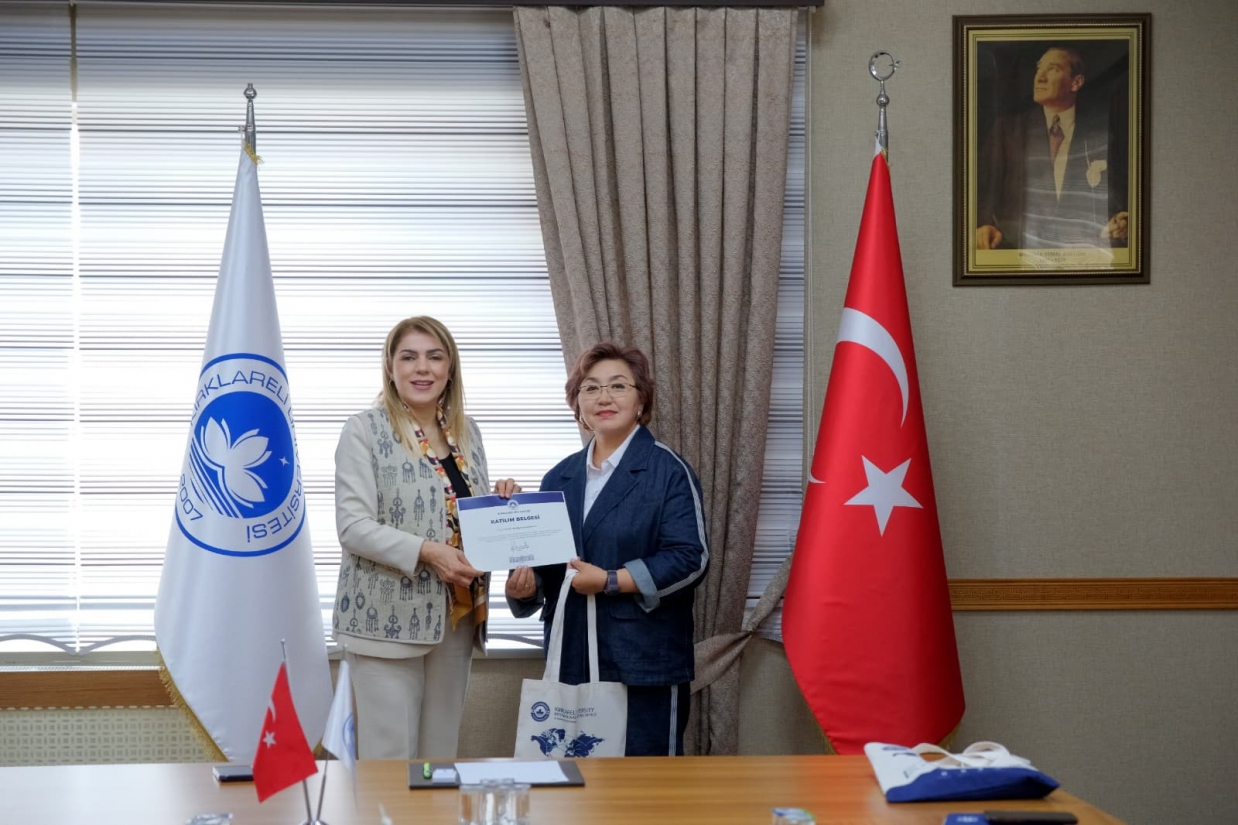 Kırgız Devlet Teknik Üniversitesi heyeti, Kırklareli Üniversitesindeki temas programının son gününde Rektörümüz Prof. Dr. Rengin Ak’ı makamında ziyaret etti.