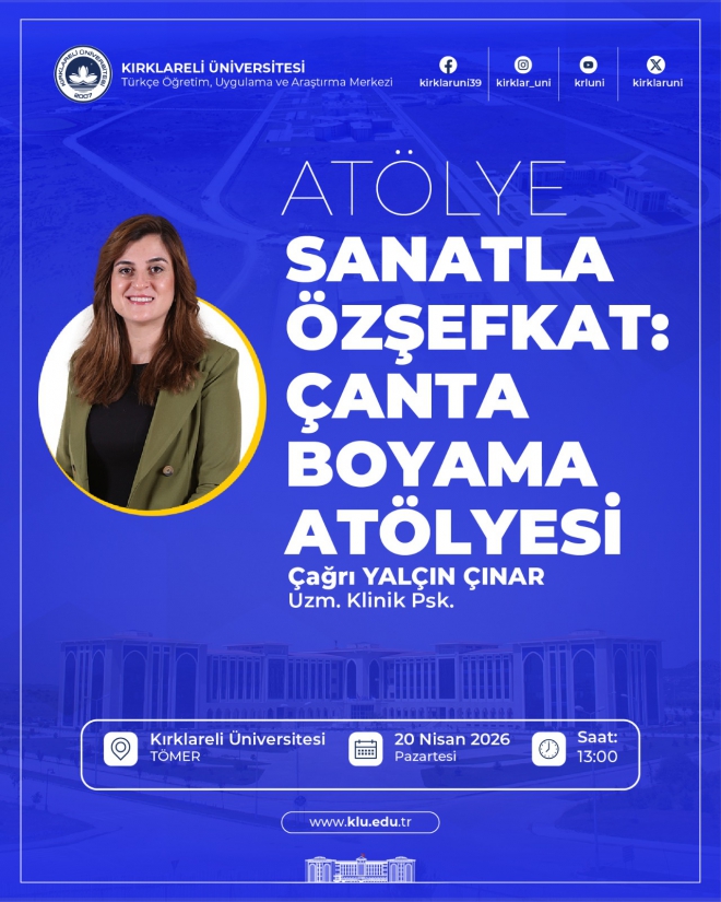 Üniversitemiz Türkçe Öğretim, Uygulama ve Araştırma Merkezi (TÖMER) tarafından “Sanatla Özşefkat: Çanta Boyama Atölyesi” başlıklı etkinlik düzenlenecektir.