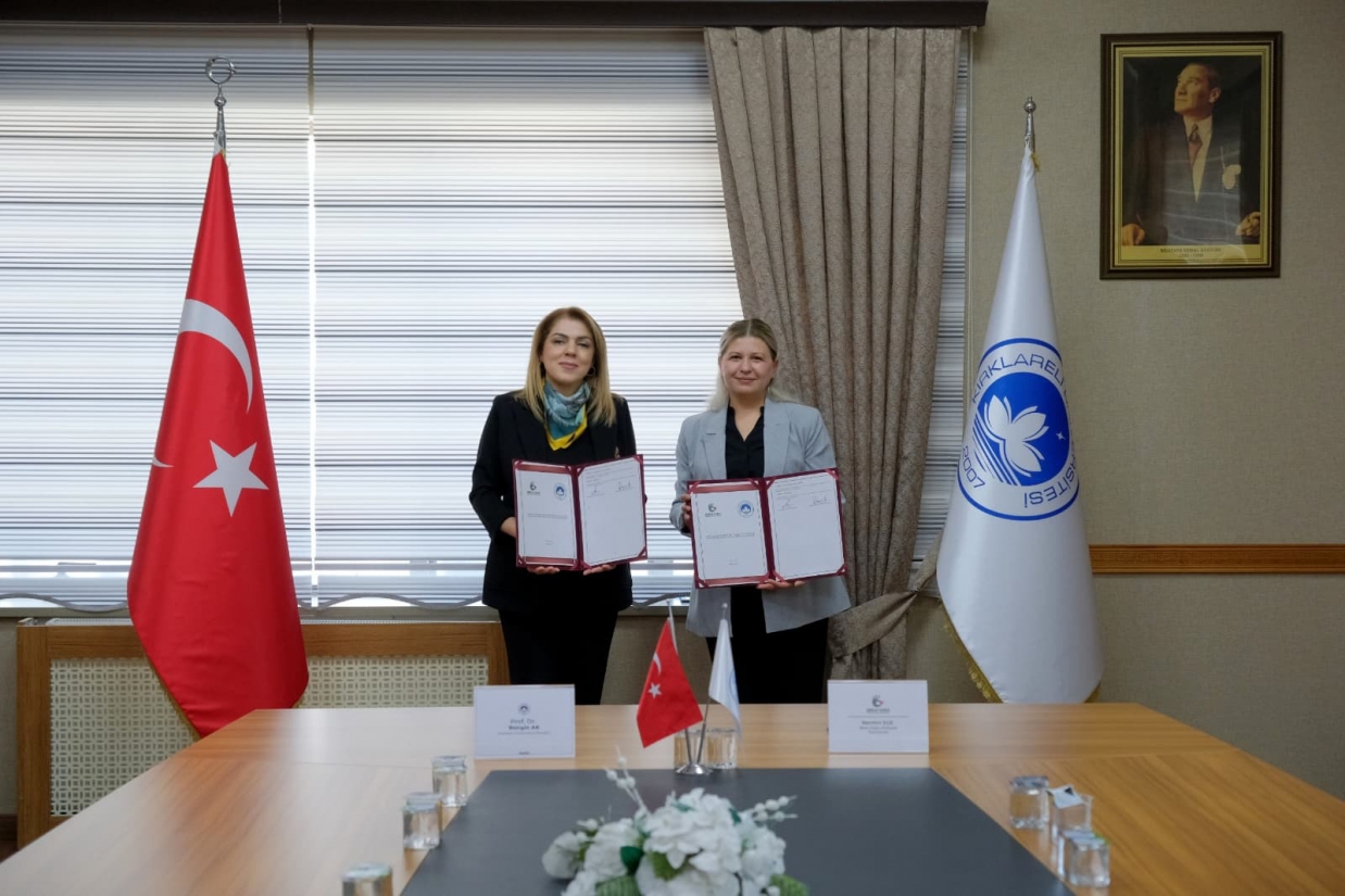 Protokol, Rektörümüz Prof. Dr. Rengin Ak ve Belu Gıda İşletme Sahibi Nermin Ege tarafından imza altına alındı.