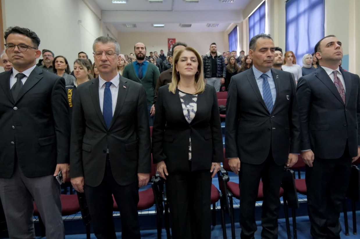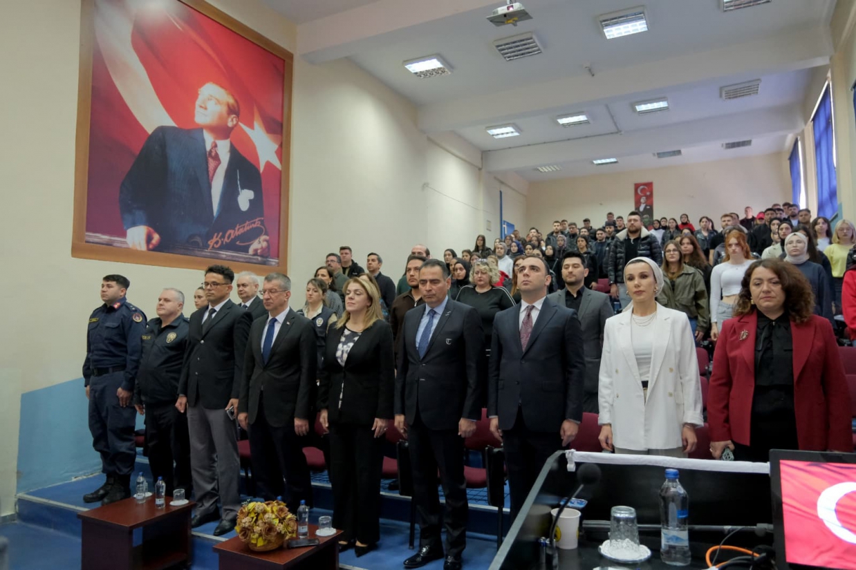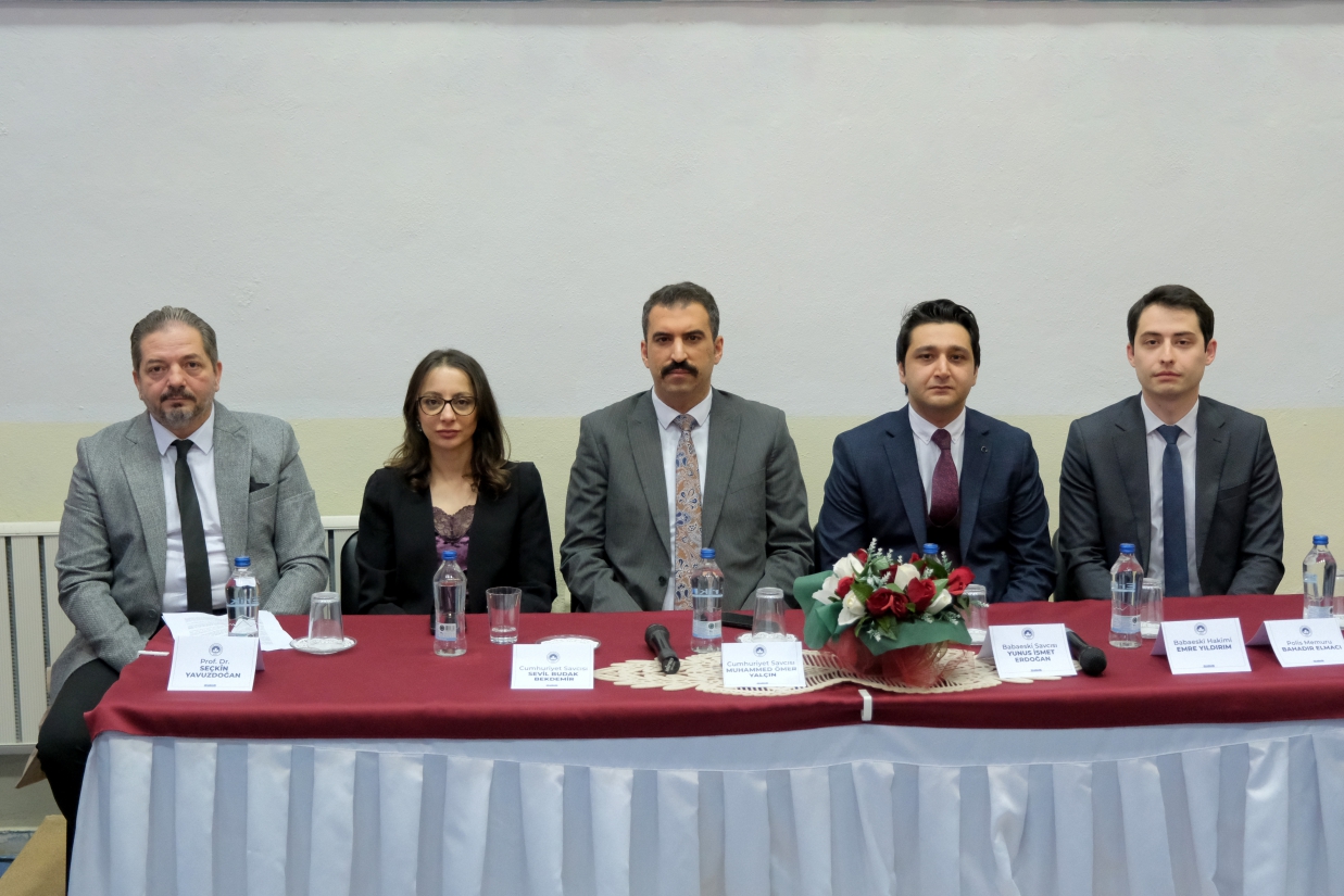 Babaeski Meslek Yüksekokulu Konferans Salonu’nda düzenlenen panele Kırklareli Cumhuriyet Başsavcısı Özkan Levent Taşkoparan, Rektörümüz Prof. Dr. Rengin Ak ve Başsavcı Vekili İsmet Saçlı, akademik ve idari personelimiz ile öğrencilerimiz katıldı.