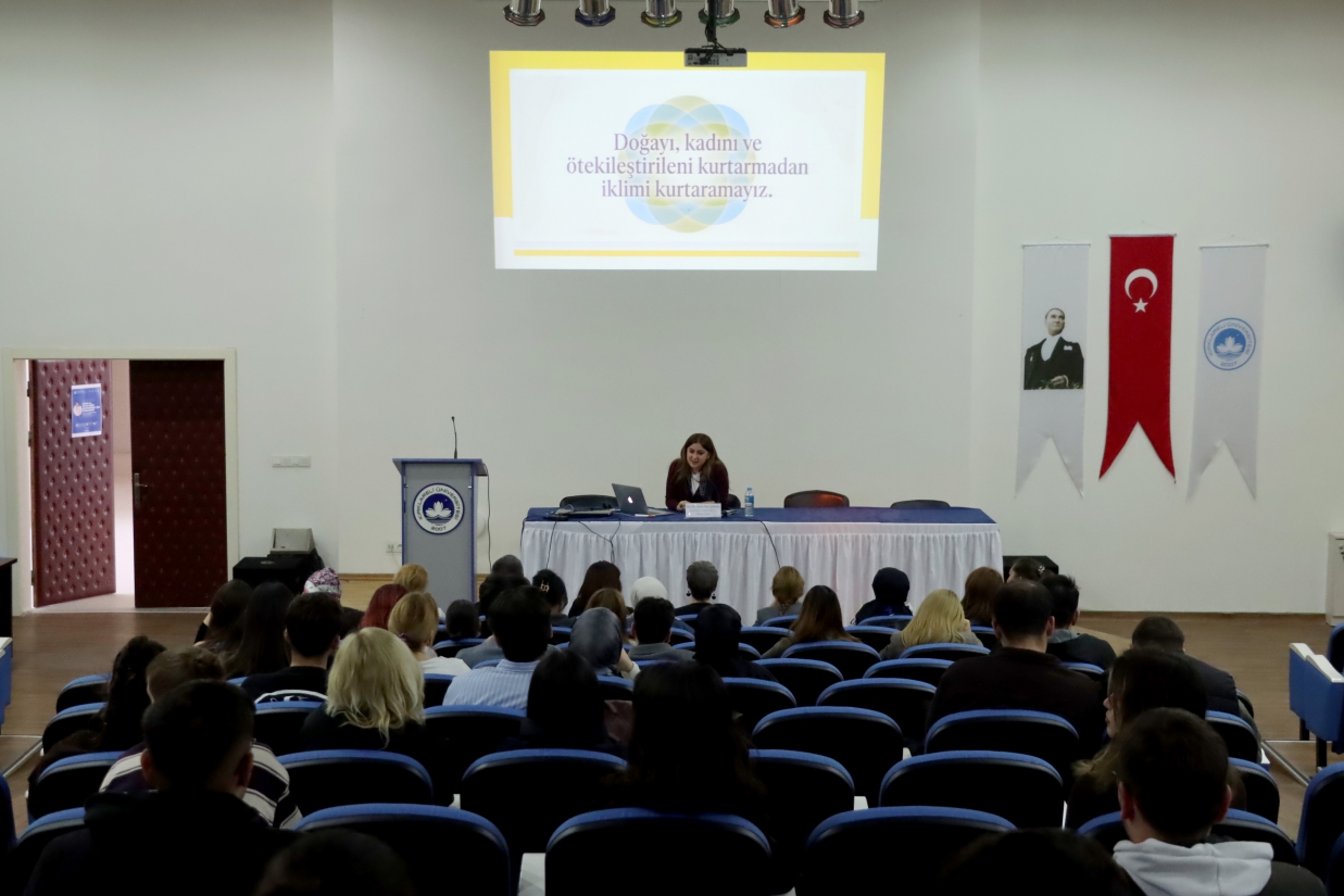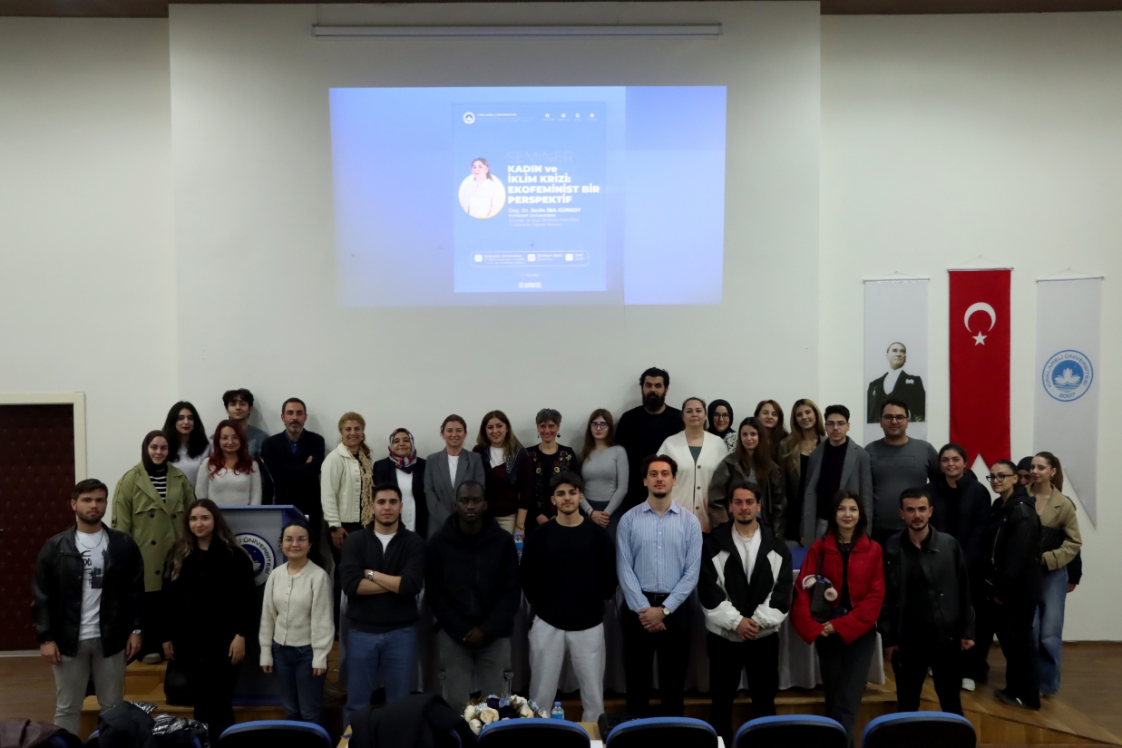 Üniversitemiz Kadın ve Aile Çalışmaları Uygulama ve Araştırma Merkezi ile Avrupa Araştırmaları Uygulama ve Araştırma Merkezi iş birliğinde düzenlenen “Kadın ve İklim Krizi: Ekofeminist Bir Perspektif” başlıklı seminer gerçekleştirildi.