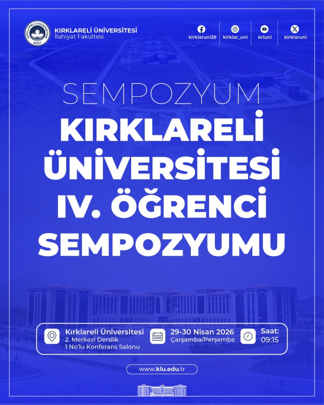 Üniversitemiz İlahiyat Fakültesi tarafından “Kırklareli Üniversitesi IV. Öğrenci Sempozyumu” düzenlenecektir.