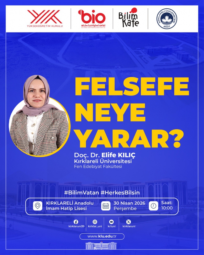 Üniversitemiz Bilim İletişim Ofisi tarafından Bilim Kafe etkinlikleri kapsamında “Felsefe Neye Yarar?” konu başlıklı etkinlik düzenlenecektir.